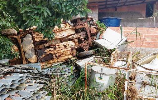 Lote de Sucata ferrosa e Sucata de Veículo. As telhas galvanizadas não estão no lote.